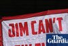 “Jim can’t fix it,” the sign said. A dozen red letters nestled on a white background, a stark contrast in an away end at Burnley full of dark-coated figures in front of which they were held aloft.