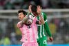 MLSInter Miami's Lionel Messi, left, and Simon Garcia of Colombia's Atletico Nacional